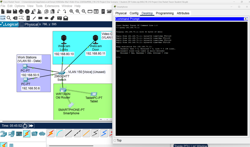 In this project, I designed and implemented a scalable network infrastructure for a DMV office. The goal was to create a guest wireless network for customers and segment video traffic to improve security using VLANs. This project demonstrates my ability to reconfigure networks using Cisco Packet Tracer and showcases essential skills like scalability planning, device configuration, and network segmentation.